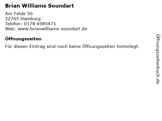 ᐅ Offnungszeiten Brian Williams Soundart Am Felde 50 In Hamburg